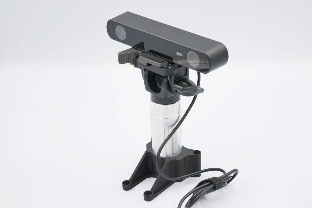 This is a universal camera mast of our own making. It comprises an aluminum tube, PLA mounting stand, and a Manfrotto 234RC monopod head.